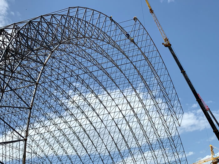 (2)网架加工前应对现场尺寸进行复测,确认无误后方可进行加工、安装;网架制作、运输、安装应遵守《空间网格结构技术规程》JGJ7-2010、《钢网架延安螺栓球节点》JG/T 10-2009、《钢网架延安螺栓球节点用高强度螺栓》 GB/T 16939-2016、《延安钢结构延安工程延安施工规范》 GB50755-2012、《延安钢结构延安工程施工质量验收标准》 GB50205-2020。